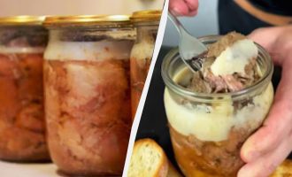 Versare il condimento in barattoli sterilizzati e arrotolare. Dopo il raffreddamento, conservare in un luogo fresco.