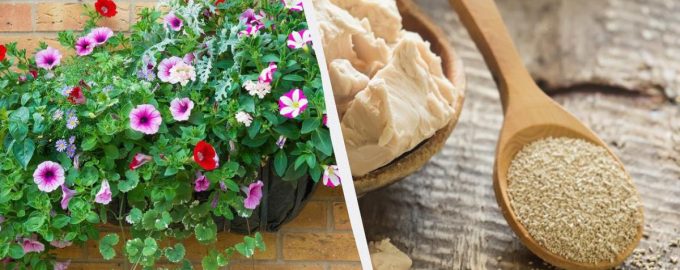 La concimazione delle petunie con i rimedi popolari si prepara con 200 grammi di lievito fresco pressato e un litro di acqtiepida. Lasciate la miscela in infusione per un paio d’ore, diluite con acqin rapporto 1:10 e innaffiate un bicchiere al giorno sotto le radici. Il concime a base di lievito è particolarmente utile in inverno, qdo le difese immunitarie delle piante sono indebolite.